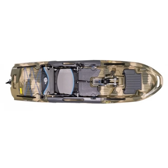 The Big Fish 103 is the newest edition to the popular Big Fish kayak series. Like its older sibling, the Big Fish 108 was specially designed to accommodate the Pro Fish Pedal Drive, featuring the intuitive 8 Ball steering system and the oversized Beaver Tail rudder for the ultimate hands-free propulsion experience. Combine that with our Cathedral trimaran hull design, the Big Fish 103 offers industry leading stability whether you’re fishing for trophies or pedaling in leisure with friends and family. The Big Fish 103 also features the EZ Rider Seat offering all day paddling comfort with multiple sitting and standing configurations – high, low, recline and flip away, which doubles as a lean bar when standing.