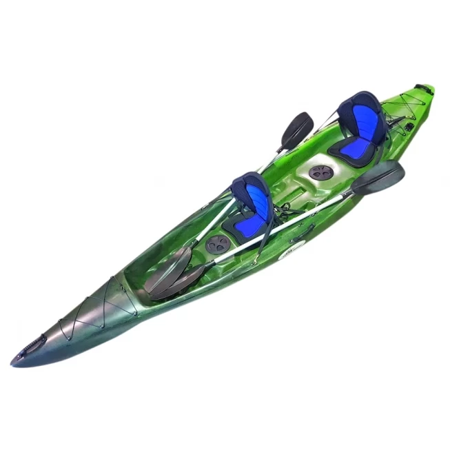 Many other 2+1 kayaks have rounded sterns and bows without well defined hull rakes, and this leads to bad tracking and reduced control of the kayak. The Crusader 2+1’s sleek hull shape and sharp bow gives an efficient transfer of energy when paddling, ensuring safe and enjoyable paddling.