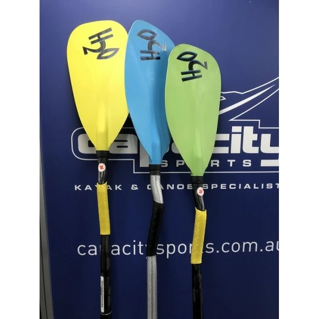 The H2O-2 Series whitewater paddle provides solid performance with crisp blade feel, control and enhanced comfort. Available in Grip Indexed Ergo Bent or standard straight shaft builds. Asymmetrical blade profile provides solid performance for both freestyle and river running. Ergo bent Texalium shaft for improved feel.