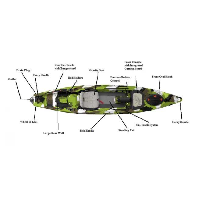 It also comes with a variety of unique features seen on Lure series kayaks including a removable multi-level extra wide Patent Pending Gravity Seat, Feelfree’s patented wheel in the keel and Uni-Track system. The Gravity Seat offers a wide range of seat heights, which is adjusted with the simple function of a lever and is removable. What really sets the Gravity Seat apart is the ability to sit flush on the deck of the kayak when additional stability and a more efficient paddling position is needed for longer distances.