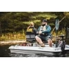 navigate with peace of mind, this fishing boat features two comfortable