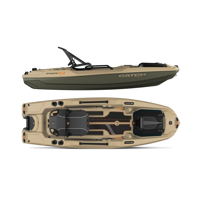 The pre-installed independent transom is ready to take your choice of gas or electric motor (up to 2.5hp). The CATCH PWR 100 is pre-wired so you can conveniently stow your battery in the front compartment while easily connecting your motor in the back.