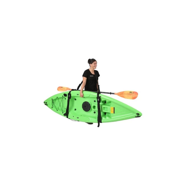 The Pelican CARRY STRAP is a must have accessory to transport your kayak or stand up paddleboard (SUP) from your car to the water. Its ergonomic padded shoulder strap absorbs and distributes the weight. Its sizing is adjustable to fit most SUPs and kayaks and its built-in paddle loop holds your paddle, leaving your hands free.