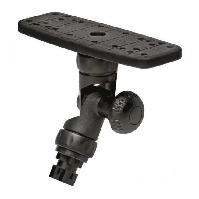 The Railblaza Fish Finder Mount R-Locks are 3 axis mount that has friction joints top and bottom featuring R-Lock lockable joints (pat pending). The centre joint is fully adjustable in 15-degree increments. Will take fish finders up to 1.5kgs (3.3 lb). Mount on an angled surfaces and have your display level! Also with the correct RAILBLAZA mount, you can mount your fish finder on a rail, or inflatable tube!