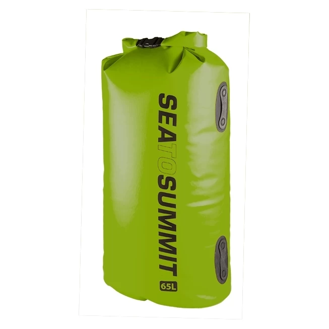 The Hydraulic™ is the new Super Heavy Duty range of dry bags from Sea to Summit specifically designed for withstand extreme conditions which demand toughness and abrasion resistance. Made of 600D TPU laminated fabric with a totally welded construction for durable waterproof seams and a snag free profile. The fabric is PVC free and UV resistant. It sheds water and does not crack in extreme cold. The unique moulded Roll top closure securely seals the bag for waterproof performance. The dry bags have an oval base to resist rolling and take less room when stacked. Heavy Duty Hypalon™ lash loops for secure attachment or lashing are provided .
