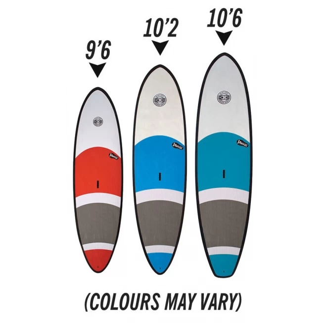 High density EVA rails and a hard bottom. The shape is a cross over board in the smaller sizes which could be used for both flat water and surf while the longer sizes are perfect for flat water fun. Constructed with a tough, double layer 6oz glass with reinforced patches in critical areas including deck standing area. The main feature of this board is the soft deck and rails which results in a safer SUP. This is a fun board for all the family no matter what stage of experience you have.