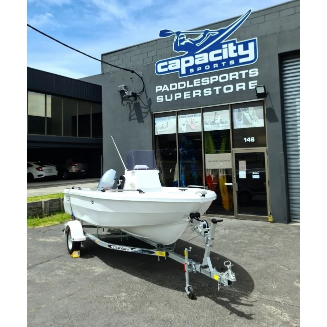 The boatie’s need are met in this “Perfect for Fishing” Smartwave 4200. You wont beat this boat for stability, safety, dry and smooth riding, even in rough waters. Best of all, it is seriously user friendly. With its flat internal floor and hidden conduits, all cabling for steering etc, is out of the way, allowing for an excellent safe and clean layout. This means this 4.2m boat is ideal for the serious fishing guru or the whole family, kids and all.